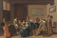 Kleine foto's van elegante mensen die feesten, drinken, flirten en muziek spelen of gokken werden erg populair in de eerste helft van de zeventiende eeuw. Dirk Hals specialiseerde zich in dit soort schilderkunst. De belangrijkste invloeden op hem waren de levendige werken van William Buytwech (1591 - 1624). Elias van de Velde had in het decennium daarvoor soortgelijke schilderijen gemaakt. Samen ontwikkelden de drie kunstenaars zich deze tijd van "Merry Company" scene. Hoewel Dirk Hals studeerde bij zijn oudere broer Frans (1582/83 - 1666), en de invloed van zijn broer's stijl vaak duidelijk is, maakt de schaarste aan werken uit Fans Hals' vroege periode het moeilijk om te bepalen hoeveel de oudere invloed heeft gehad op de jongere.