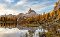 Lago Federa is een erg mooi meertje in de Dolomieten in Italiaanse Alpen nabij Cortina d'Ampezzo in Italië. De bergketen heet Croda di Lago en de bergtop aan de voet van het meertje heet Becco di Mezzodi en is 2603m hoog. De vele gele Lariksen omringen het meertje en vooral in de herfst is dit een mooi gezicht met al dat die herfstkleuren. Aan het meer ligt Rifugio Palmieri, dat is de enige hut daar in de Dolomieten. Ik maakte de foto tijdens een fototour vroeg in de ochtend in de herfstperiode. De berg en de lariksen weerspiegelen heel mooi in het