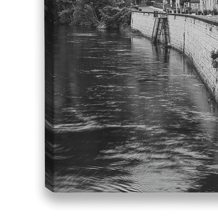 Een horizontale foto in Zwart-Wit van een vroege zomerochtend in het prachtige dorp La Roque Gageac, gelegen in het departement Dordogne in het zuidwesten van Frankrijk, in de regio Nouvelle-Aquitaine.