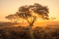Heerlijk genieten van een ochtendwandeling op de zuiderheide. Zeker als de natuur net wakker wordt van de net opkomende zon.