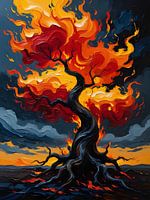 Over ‘Een olieverfschilderij met textuur van een brandende boom tegen een stormachtige schemerlucht’ van Artistic