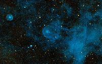 Een op hol geslagen ster, genaamd CW Leo, ploegt door de diepten van de ruimte en stapelt interstellair materiaal op. Origineel van NASA.