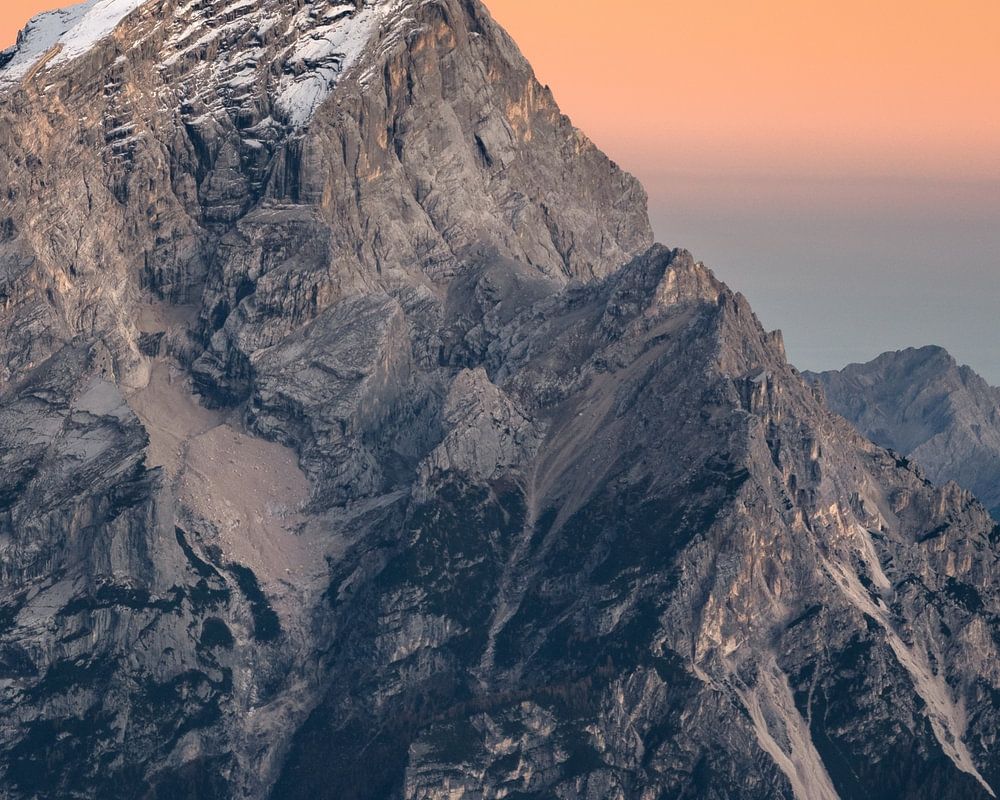 Dit was een hele mooie zonsondergang met een oranje gekleurde lucht. De bergtop in het midden heeft nog een klein beetje sneeuw op de top, alhoewel het pas herfst is en de winter nog niet is begonnen.