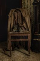 Een oude jas hangend aan een oude stoel in een verlaten woning ergens in Europa!