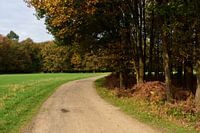 Deze foto heb ik gemaakt op landgoed Staverden bij Ermelo op de Veluwe. Ik vond de bocht in het pad wel interessant dat achter de bomen verdwijnt. Toen ik deze foto maakte kwam de zon net door de bewolking heen. Op het gras links op de foto heb ik nooit vee zien grazen, ook wild zoals herten of reeën heb ik er nooit op zien staan.