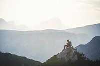 Mijn vriendin heeft een pauze tijdens een wandeling rond Tre Cime de Lavaredo.