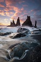 De omstandigheden waren gewoon perfect tijdens deze mooie ochtend op het zwarte zand in Vik, IJsland.