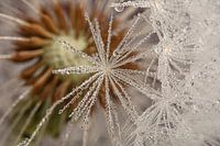 "Een pluisje met druppels voor de pluizenbol" is een macrofoto van een schitterende pluizenbol van een paardenbloem, waar een pluisje heel mooi voor de paardenbloem staat. De kleine waterdruppeltjes op de paardenbloem sieren de pluisjes en hebben iets decoratiefs.