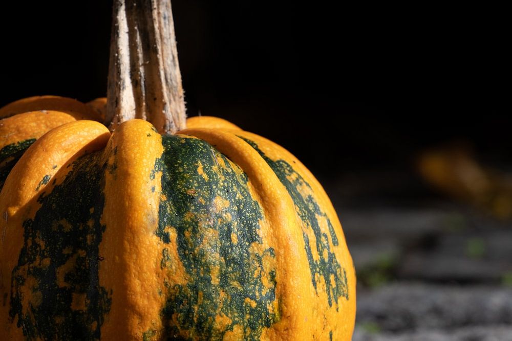 Koop de foto Een pompoen op kasseien van Ulrike Leone op canvas, aluminium dibond, (ingelijste) fotoprint, behang en ArtFrame, op maat geprint in Fine-Art kwaliteit.