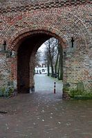 Ik heb deze foto gemaakt bij de Vischpoort in Harderwijk. De onderdoorgang is van de Vischpoort, aan de andere kant van de poort zie je Vischmarkt, een van de mooiste pleinen van Harderwijk. Op de voorgrond zie je metalen visjes in de bestrating, hier was vroeger de Zuiderzee die tegen de poort aan kwam. Harderwijk lag vroeger letterlijk tegen de Zuiderzee aan.