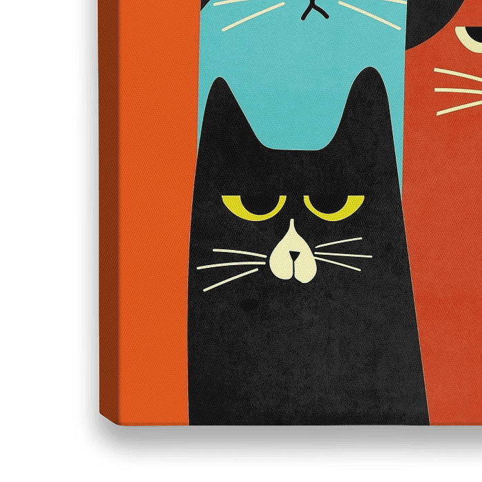 Koop dit abstracte kunstwerk Een portret van 6 gekleurde katten met een retro uitstraling. van Bianca van Dijk op canvas, aluminium dibond, (ingelijste) fotoprint, behang en ArtFrame, op maat geprint in Fine-Art kwaliteit.