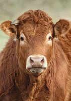 Een portret van het koeien soort limousin. Een prachtige bruin gekleurde koe.