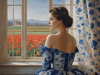 Ontdek de betoverende schoonheid van onze nieuwste digitale kunstcollectie: "Elegantie in Delfts Blauw". Deze meesterlijke creatie vangt de essentie van klassieke olieverfkunst en brengt een tijdloze charme in elk interieur. Het kunstwerk toont een elegante vrouw, gehuld in een schitterende Delft blauwe jurk, die dromerig wegkijkt.