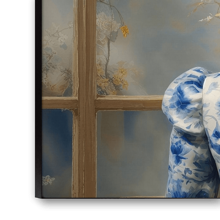 Met verfijnde details en een zachte kleurenpalet, straalt dit stuk een serene en verfijnde ambiance uit. De subtiele texturen en nuances van olieverf worden prachtig nagebootst, waardoor elk detail tot leven komt. Dit digitale kunstwerk is perfect voor liefhebbers van zowel traditionele als moderne kunst, en voegt een vleugje historische allure toe aan elke ruimte.