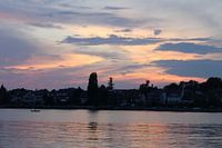 Een prachtige zonsondergang op het Bodenmeer op het water is een roeiboot.