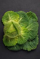 De pracht van een groene kool uitgevouwen in een rechthoek.