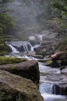 Een telephoto opname van een rivier in de bossen van Yakushima eiland. De bossen van Yakushima worden beschermd door de Unesco heritage organisatie. Yakushima eiland ligt ten zuiden van Japan, onder de provincie Kyushu.