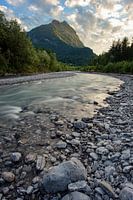 Koop dit landschapskunstwerk Een rivier langs de bergen tijdens zon ondergang. van Robinotof op canvas, aluminium dibond, (ingelijste) fotoprint, behang en ArtFrame, op maat geprint in Fine-Art kwaliteit.