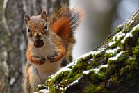 Koop de foto Een rode eekhoorn in de val van Claude Laprise als print op canvas, aluminium dibond, (ingelijste) fotoprint, behang en ArtFrame. Voor jou op maat geprint in Fine-Art kwaliteit.