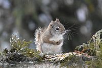 Koop de foto Een rode eekhoorn in de val van Claude Laprise op canvas, aluminium dibond, (ingelijste) fotoprint, behang en ArtFrame, op maat geprint in Fine-Art kwaliteit.