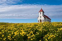 Een romantisch klein kerkje omgeven door zonnebloemen op een klein eiland in IJsland. Iedere keer als ik dit kerkje zie moet ik denken aan de clip November Rain van Guns 'n' Roses.