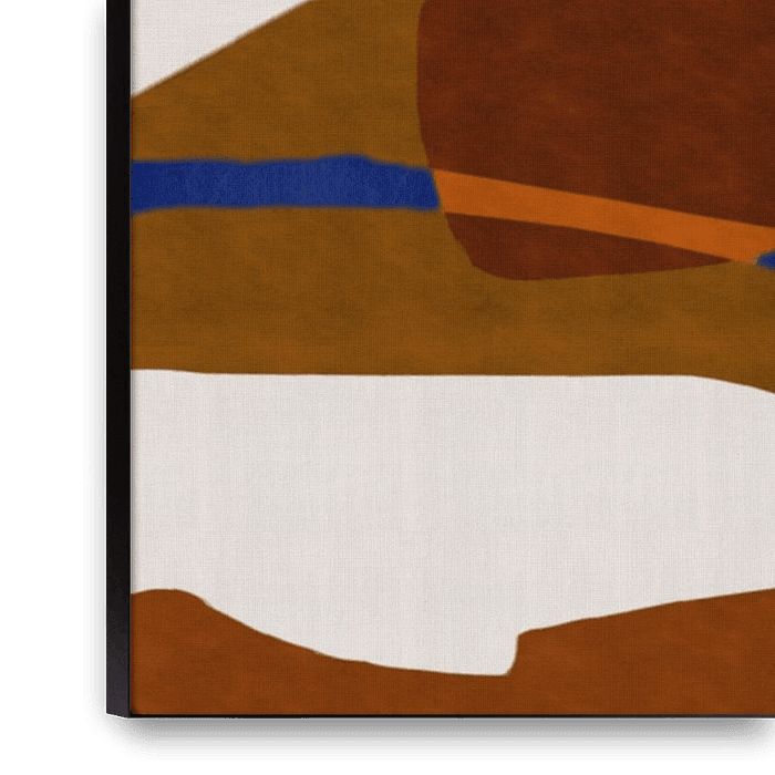 Abstract minimalistisch kunstwerk met eenvoudige geometrische vormen en warme tinten in bruin en oranje.