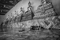BANGKOK, THAILAND, DECEMBER 7 2015 - SLEEPING BOY IN BUDHIST TEMPEL. Een rustige en veilige plek in de Wat Pho tempel om onder het oog van diverse Budha beelden te slapen