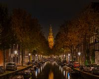 Een typisch Amsterdams uitzicht. Een gracht met op de achtergrond de Zuiderkerk. De bladeren aan de bomen kregen net de mooie bruin-rode herfstkleuren voordat ze van de bomen zouden vallen.