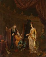 Een schilder in zijn atelier, een dame portretterend, Ludolf Bakhuysen, 1707