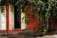 Een gevel van een oude woning die baadt in de zon, maar klimop zorgt voor de nodige schaduw.