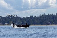 Een okra komt geheel uit het water en land weer in de oceaan.