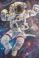 Dit dynamische kunstwerk toont een astronaut die in de ruimte zweeft in een krachtige bokshouding. De astronaut in het ruimtepak lijkt klaar om de uitgestrektheid van het sterrenstelsel te veroveren terwijl hij poseert te midden van fonkelende sterren en planeten. De combinatie van sport en ruimtevaart geeft dit beeld een unieke en krachtige energie die een geest van ontdekking en assertiviteit symboliseert. De oogverblindende kleuren en precieze details van het pak trekken de kijker mee in een wereld van avontuur en oneindigheid. Perfect voor fans van astronomie en sport die op zoek zijn naar een inspirerend en energiek stuk.