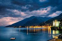 Een sterke onweersbui boven het Comomeer in Gravedona.
