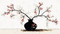 Koop dit stilleven Een stilleven zwarte vaas met rode bloesem takken japandi . van J.a Dijkstra op canvas, aluminium dibond, (ingelijste) fotoprint, behang en ArtFrame, op maat geprint in Fine-Art kwaliteit.