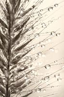 "Een stukje grasaren ( in taupe - beige en grijs- tinten)" is een macrofoto van een waterdruppeltjes die aan een grasaren hangen (lampenpoestersgras).