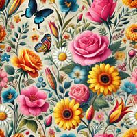 Een levendige mix van rozen, margrieten, tulpen en wilde bloemen in gedurfde, vrolijke tinten. Dit ontwerp is perfect om een uitbarsting van energie en levendigheid toe te voegen aan elk project.