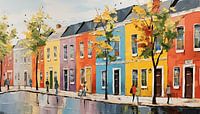 Dit schilderij is onderdeel van een serie met de titel "Een tapijt van traditie en moderniteit", waarin de schoonheid en charme van dorpsstraten die het oude en het nieuwe, het culturele en het natuurlijke combineren, worden verkend.