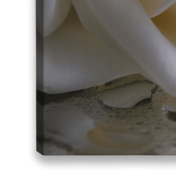 Koop dit moderne kunstwerk Een treurige witte roos met "een traan" (close up) van Marjolijn van den Berg op canvas, aluminium dibond, (ingelijste) fotoprint, behang en ArtFrame, op maat geprint in Fine-Art kwaliteit.