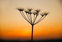 Een uitgebloeide fluitenkruid bij zonsondergang