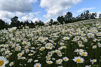 Een veld van madeliefjes in bloei, Sainte-Apolline, Québec, Canada