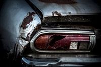 Een achtergelaten oude auto met veel roest. Het is het model Datsun 120y. En stoer plaatje voor in een industrieel interieur. Een beetje retro / vintage foto.