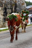Koop dit koeien kunstwerk Een versierde koe tijdens de veedrift op de Seiser Alm van Thomas Heitz op canvas, aluminium dibond, (ingelijste) fotoprint, behang en ArtFrame, op maat geprint in Fine-Art kwaliteit.