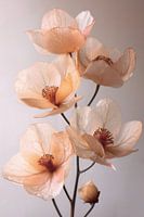 Een muurschildering als decoratieve kunst voor een stijlvol interieur. Grote, delicate bloesems op een tak.