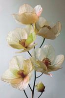 Een muurschildering als decoratieve kunst voor een stijlvol interieur. Grote, delicate bloesems op een tak.
