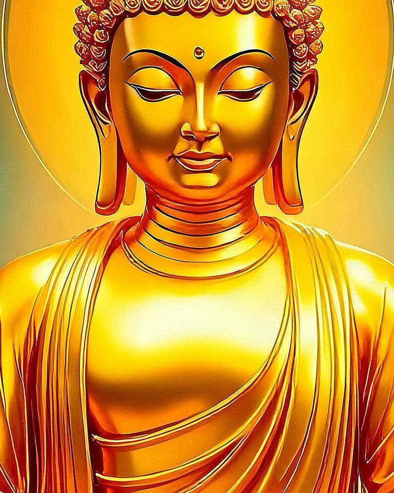 De subtiele verlichting benadrukt de contouren van het beeld en laat het bijna zweven in de lucht, alsof het omgeven is door spirituele energie. Deze minimalistische compositie nodigt de kijker uit om even stil te staan en bij zichzelf naar binnen te kijken. Het creëert een sfeer van contemplatie die aanzet tot reflectie en innerlijke rust. Dit beeld legt niet alleen de fysieke aanwezigheid van de Boeddha vast, maar ook de essentie van vrede en verlichting die hij belichaamt - een uitnodiging om na te denken en op zoek te gaan naar innerlijke balans.