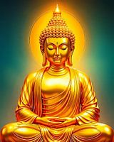 De subtiele verlichting benadrukt de contouren van het beeld en laat het bijna zweven in de lucht, alsof het omgeven is door spirituele energie. Deze minimalistische compositie nodigt de kijker uit om even stil te staan en bij zichzelf naar binnen te kijken. Het creëert een sfeer van contemplatie die aanzet tot reflectie en innerlijke rust. Dit beeld legt niet alleen de fysieke aanwezigheid van de Boeddha vast, maar ook de essentie van vrede en verlichting die hij belichaamt - een uitnodiging om na te denken en op zoek te gaan naar innerlijke balans.