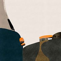 Modern abstract kunstwerk in natuurlijke kleuren zoals bruin en beige. Een combinatie van minimalistische elementen met sterke texturen en contrasterende fel oranje accenten. Dit kunstwerk creëert een harmonieus evenwicht tussen neutrale en gedurfde tinten en voegt een vleugje warmte en levendigheid toe.