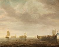 Een vloot haringbussen in bedrijf, Simon de Vlieger (1625)