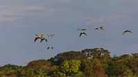 Het Barba Azul Nature Reserve in Bolivia is een paradijs voor veel kleurrijke vogels. Het reservaat beschermt de met uitsterven bedreigde Blauwkeelara, maar daarvan profiteert de algemenere Blauw-gele ara ook mee. Een vlucht blauw-gele ara's over de savanne is een fantastisch gezicht! Voor meer foto's van Barba Azul zie: http://naturebylennart.com/nl/birds-blog/visiting-barba-azul-nature-reserve/.
