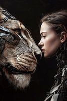 Een vrouw en leeuwin robot, harmonie of strijd?